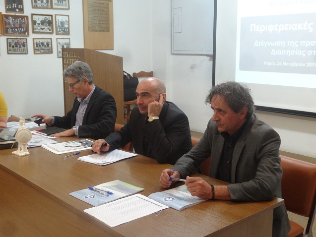 Με μεγάλη επιτυχία, πραγματοποιήθηκε το απόγευμα της Παρασκευής (24/11) στην αίθουσα του Συνδέσμου Διαιτητών Ποδοσφαίρου Φθιώτιδας στη Λαμία, η 3η Περιφερειακή Συνάντηση Ενημέρωσης της Κεντρική Επιτροπής Διαιτησίας της ΕΠΟ, παρουσία του προέδρου της, Βίτορ Περέιρα και των μελών αυτής Ιωάννη Τσαχειλίδη και Δημήτριου Καλύβα, με εκπροσώπους των Επιτροπών Διαιτησίας των ΕΠΣ Πιερίας, Λάρισας, Καρδίτσας, Τρικάλων, Φθιώτιδας, Ευρυτανίας, Φωκίδας και Θεσσαλίας.