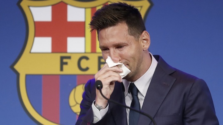 Ο Μέσι ξεκίνησε με δάκρυα στα μάτια την αποχαιρετιστήρια συνάντησή του με δημοσιογράφους, παρουσία συμπαικτών του στο «Καμπ Νου», ενώ την ίδια ώρα εκατοντάδες οπαδοί της Μπαρτσελόνα ήταν συγκεντρωμένοι έξω από το γήπεδο.