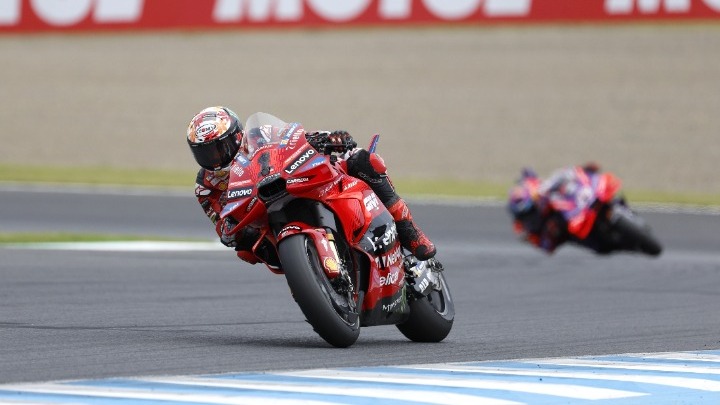 Ο δις πρωταθλητής του MotoGP και κάτοχος του τίτλου, Φραντσέσκο Μπανιάια, πανηγύρισε τη νίκη στο σημερινό (6/10) γκραν πρι της Ιαπωνίας στην πίστα του Μοτέγκι και μείωσε στους δέκα βαθμούς την διαφορά που τον χωρίζει από τον Ισπανό πρωτοπόρο της γενικής, Χόρχε Μαρτίν. Ο Ιταλός αναβάτης της Ducati, ο οποίος είχε επικρατήσει και στον χθεσινό αγώνα σπριντ, κράτησε πίσω του τον "Martinator" για 20 γύρους και πανηγύρισε την όγδοη νίκη του σε μια σεζόν για πρώτη φορά στην καριέρα του. Μετά το αποτέλεσμα αυτό, ο Μαρτίν της Pramac Racing προηγείται στην κατάταξη με 392 βαθμούς, ενώ ο «Πέκο» Μπανιάια είναι δεύτερος με 382, ενώ απομένουν τέσσερις αγώνες για την ολοκλήρωση του πρωταθλήματος.
