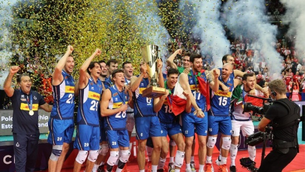 Μετά το ποδόσφαιρο, η Ιταλία στέφθηκε -και μάλιστα με ανατροπή- πρωταθλήτρια Ευρώπης και στο βόλεϊ. Υστερα από έναν εκπληκτικό τελικό, που διεξήχθη στην πόλη Κατοβίτσε της Πολωνίας, οι Ιταλοί διεθνείς επικράτησαν με 3-2 σετ (22-25, 25-20, 20-25, 25-20, 15-11) της Σλοβενίας που κατέκτησε το αργυρό μετάλλιο.