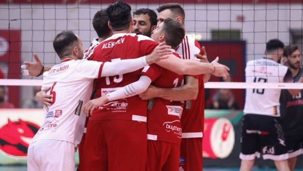 Οι «ερυθρόλευκοι» επικράτησαν με 3-0 σετ του ΠΑΟΚ, στο κλειστό «Μελίνα Μερκούρη» του Ρέντη, γράφοντας το 1-0 στη σειρά, η οποία μεταφέρεται στην PAOK Sports Arena (6/5, 18:00).