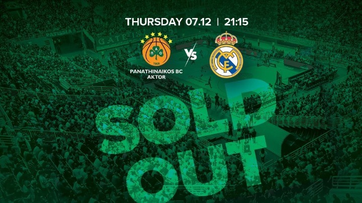 «Η ΚΑΕ Παναθηναϊκός AKTOR ενημερώνει τους φίλους της ομάδας πως εξαντλήθηκαν τα εισιτήρια για την αναμέτρηση με αντίπαλο τη Real Madrid (07/12, 21:15) στο ΟΑΚΑ, στο πλαίσιο της 13ης αγωνιστικής της κανονικής περιόδου της Euroleague.