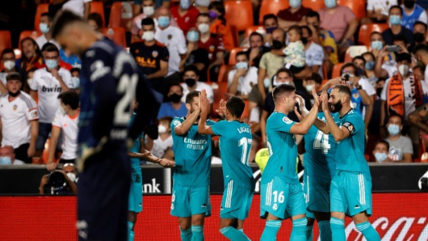Η Ρεάλ Μαδρίτης έφυγε με τεράστια νίκη (2-1) απέναντι στη Βαλένθια, στο ντέρμπι της 5ης αγωνιστικής, με την οποία πέρασε μόνη πρώτη στη βαθμολογία και ταυτόχρονα υποχρέωσε τις «νυχτερίδες» στην πρώτη εφετινή ήττα τους.