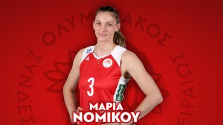 «Ο ΟΛΥΜΠΙΑΚΟΣ Σ.Φ.Π., ανακοινώνει την έναρξη της συνεργασίας του με τη Mαρία Νομικού. Η Ελληνίδα ακραία-διαγώνιος (ημ. γέννησης, 30/3/1993, ύψος 1,90μ.), εντάσσεται στο ρόστερ της ομάδας βόλεϊ Γυναικών του συλλόγου μας.