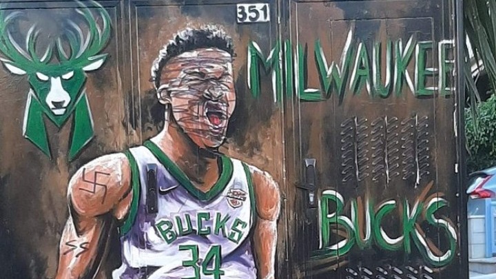 Συγκεκριμένα, άγνωστοι είχαν μουτζουρώσει το πρόσωπο του ΝΒΑερ Γιάννη Αντετοκούνμπο, ενώ στο δεξί μπράτσο του είχαν σχεδιάσει μία σβάστικα και το σήμα των SS.