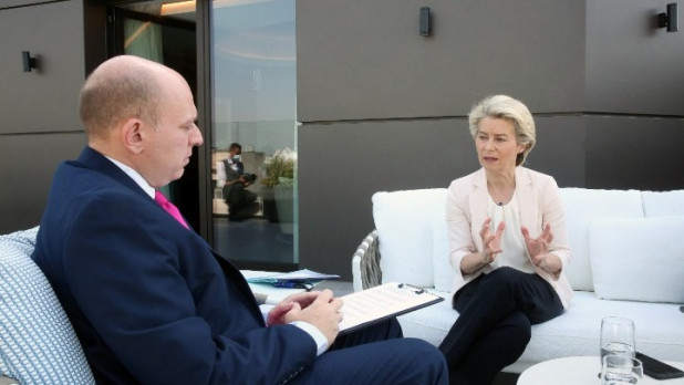 «Ο χρόνος εξαντλείται. Επείγει να προχωρήσουμε τώρα στη μάχη απέναντι στην κλιματική αλλαγή», τονίζει η Ούρσουλα φον ντερ Λάιεν σε αποκλειστική συνέντευξη που παραχώρησε στο ΑΠΕ-ΜΠΕ, με αφορμή τη Σύνοδο Med9 που πραγματοποιήθηκε στην Αθήνα και τη Διακήρυξη που υιοθετήθηκε από τους ηγέτες των χωρών που συμμετείχαν στη Σύνοδο. Μιλώντας στον Αιμίλιο Περδικάρη, πρόεδρο και γενικό διευθυντή του ΑΠΕ-ΜΠΕ, η πρόεδρος της Ευρωπαϊκής Επιτροπής τονίζει ότι οι εννέα χώρες του Μεσογειακού Νότου μπορούν να γίνουν πρωτοπόρες στον αγώνα κατά της κλιματικής αλλαγής.