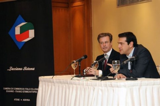 Τους πυλώνες του προγράμματος του ΣΥΡΙΖΑ, ώστε να υπάρξει μια βιώσιμη λύση για την Ελλάδα, ανέπτυξε ο Αλέξης Τσίπρας σε γεύμα εργασίας που είχε σήμερα στο Ελληνο-Ιταλικό Επιμελητήριο.