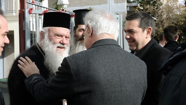 Μηνύματα αλληλεγγύης, συνύπαρξης, ειρήνης και αγάπης, έστειλαν ο πρωθυπουργός Αλέξης Τσίπρας και ο αρχιεπίσκοπος Αθηνών και πάσης Ελλάδος, Ιερώνυμος, κατά την επίσκεψη τους στο «Δημήτρειο» Κέντρο Δημιουργικής Απασχόλησης Παιδιών.
