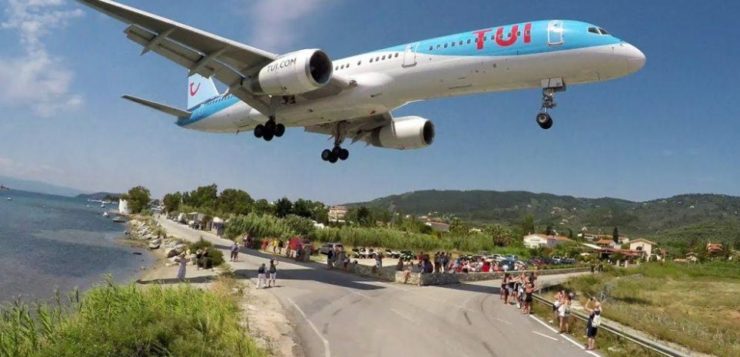 Στο αεροδρόμιο Σκιάθου, τα αεροσκάφη πετούν σε απόσταση «αναπνοής» πάνω από τα κεφάλια παραθεριστών. Ο διάδρομος προσγείωσης-απογείωσης απέχει μόλις μερικά μέτρα μακριά από την παραλία και βρίσκεται δίπλα από τον παραλιακό δρόμο. Αυτό από μόνο του αποτελεί τουριστική… atttaction με εκατοντάδες επισκέπτες να συγκεντρώνονται στο σημείο τις ώρες απογείωσης ή προσγείωσης αεροπλάνων προκειμένου να δουν το μοναδικό θέαμα.