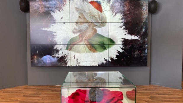 Στολές, σπαθιά, όπλα, ευαγγέλια και άλλα κειμήλια από την περίοδο της Επανάστασης φιλοξενούνται στο περίπτερο που βρίσκεται στην είσοδο της ΔΕΘ από τη βόρεια πύλη, ενώ με τη βοήθεια της ψηφιακής τεχνολογίας προβάλλονται οι σημαντικές μορφές των επαναστατών που έπαιξαν ρόλο στον ξεσηκωμό του γένους στην Πελοπόννησο.
