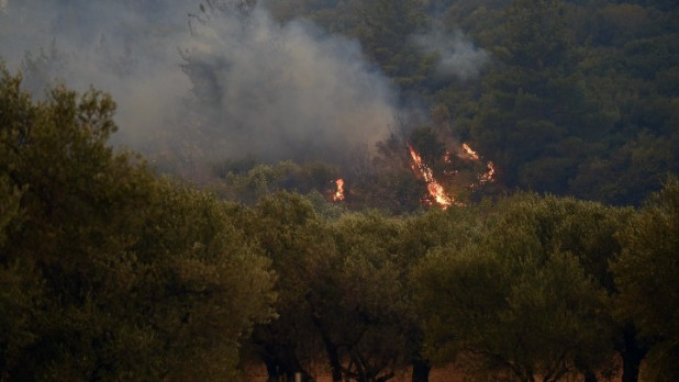 Στην περιοχή έχουν μεταφερθεί ισχυρές επίγειες δυνάμεις, όμως το ανάγλυφο δεν επιτρέπει να προχωρήσουν και να προσεγγίσουν τις φλόγες.