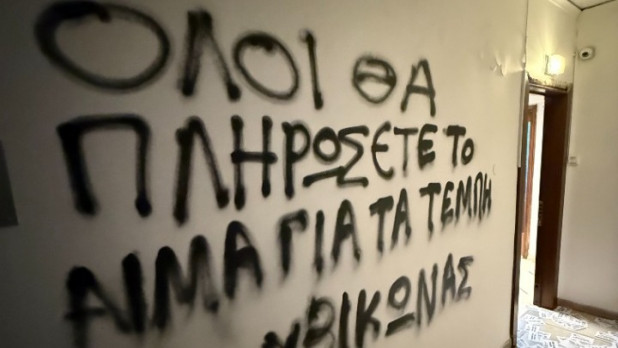 Επίθεση του «Ρουβίκωνα» στο πολιτικό γραφείο του βουλευτή της Ν.Δ Στράτου Σιμόπουλου