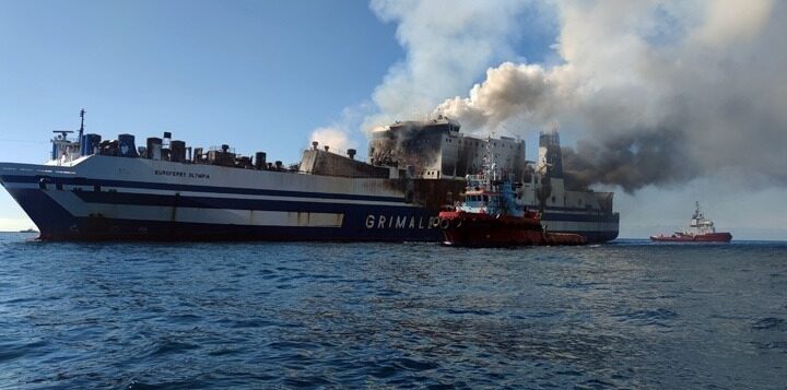 Euroferry Olympia: Συνεχίζονται οι προσπάθειες της Πυροσβεστικής για να πέσει η θερμοκρασία μέσα στο πλοίο