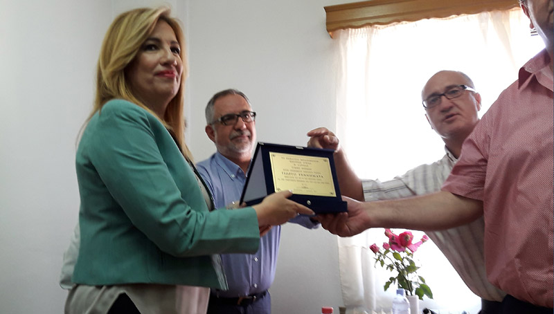 Η πρόεδρος του ΠΑΣΟΚ στην επίσκεψη που είχε σήμερα, τιμήθηκε από τους εργαζόμενους του Κέντρου Υγείας με μια ειδική πλακέτα, ενώ ο γραμματέας της νομαρχιακής του ΠΑΣΟΚ Βαγγέλης Γιαννούλας τής παρέδωσε μια φωτογραφία που απεικονίζεται ο πατέρας της Γιώργος Γεννηματάς κατά τη διάρκεια των εγκαινίων του Κέντρου Υγείας το 1985.