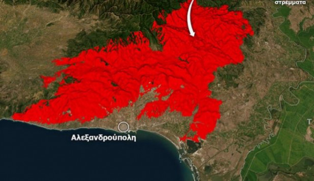 Πύρινος όλεθρος από τη συνένωση των πυρκαγιών σε Αλεξανδρούπολη και Δαδιά. Αυξάνεται διαρκώς ο αριθμός των καμένων εκτάσεων.