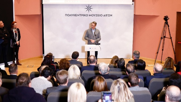 Τα εγκαίνια του αναστηλωμένου ανακτόρου του βασιλιά των Μακεδόνων, Φιλίππου Β' στις Αιγές, που έχει χαρακτηριστεί "Παρθενώνας της Μακεδονίας", είναι ένα γεγονός με παγκόσμια σημασία και πολύ μεγάλη διεθνή εμβέλεια, είπε ο πρωθυπουργός Κυριάκος Μητσοτάκης, κατά την ομιλία του στην τελετή εγκαινίων η οποία έγινε στο Πολυκεντρικό Μουσείο Αιγών.