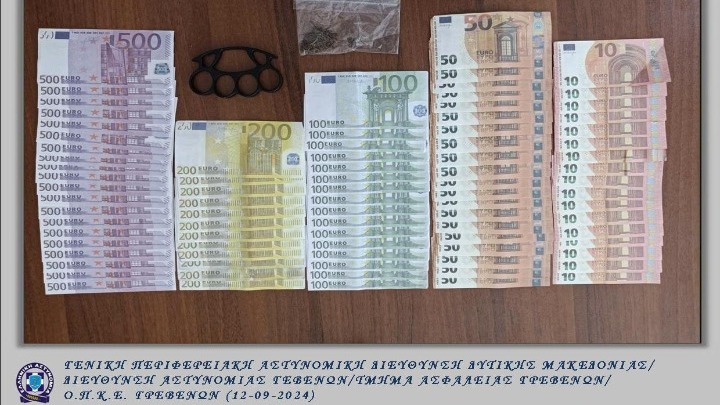 Ογδόντα πέντε πλαστά χαρτονομίσματα συνολικής χρηματικής αξίας δεκαπέντε χιλιάδων ευρώ, μια μικροποσότητα ακατέργαστης κάνναβης και μία σιδερογροθιά βρέθηκαν στην κατοχή ενός 22χρονου, κατά τη διάρκεια ελέγχου στο αυτοκίνητο και στο σπίτι του, στην πόλη των Γρεβενών. Ο άνδρας συνελήφθη για παραχάραξη νομίσματος, καθώς και για παραβάσεις της νομοθεσίας περί ναρκωτικών ουσιών και περί όπλων.