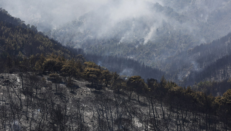 Η νεροποντή έσβησε τη φωτιά στα Δερβενοχώρια