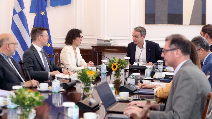 Ο πρωθυπουργός Κυριάκος Μητσοτάκης συναντήθηκε σήμερα με την Ευρωπαία επίτροπο Ισότητας, Ετοιμότητας και Διαχείρισης Κρίσεων Χάτζα Λαμπίμπ, στο Μέγαρο Μαξίμου.