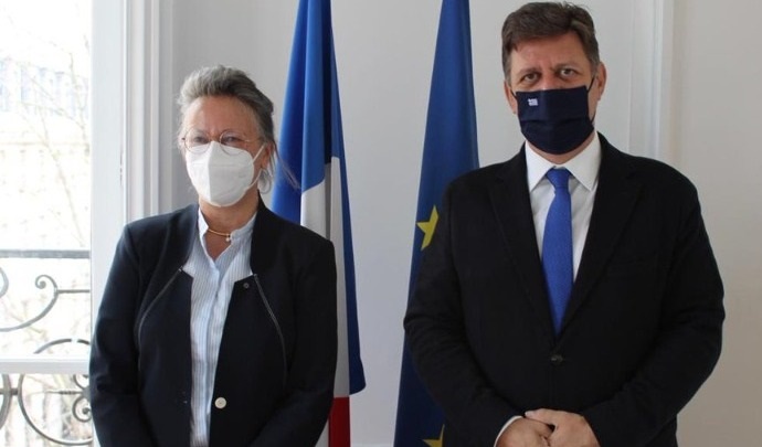 Σχετικά με τις σχέσεις Ελλάδας - Γαλλίας, ο αναπληρωτής υπουργός Εξωτερικών τόνισε ότι «με τη Γαλλία μάς ενώνουν ιστορικοί και στρατηγικοί δεσμοί. Το σύνθημα που υπάρχει από τη δεκαετία του '70 και μας ακολουθεί μέχρι σήμερα είναι πολύ ισχυρό: Ελλάς - Γαλλία - Συμμαχία». Υπογράμμισε ακόμα, όπως σημειώνεται στην ίδια ανακοίνωση, ότι αποτελεί σημαντικό γεγονός η επίσκεψη του Προέδρου Μακρόν στην Αθήνα, για τον εορτασμό των 200 χρόνων από την έναρξη της Ελληνικής Επανάστασης του 1821, την ίδια στιγμή που Ελλάδα και Γαλλία θα βρίσκονται στο ίδιο τραπέζι του Ευρωπαϊκού Συμβουλίου την 25η και 26η Μαρτίου για τις σχέσεις ΕΕ - Τουρκίας.