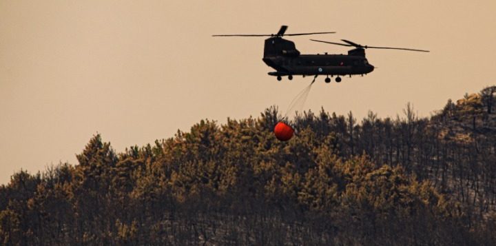Για έβδομη ημέρα καίει η φωτιά στο Δάσος της Δαδιάς, όπου με το πρώτο φως της ημερας ξεκίνησαν οι ρίψεις νερού.