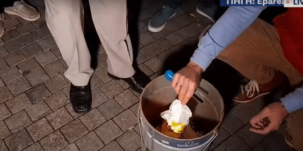 Εκεί, γονείς και άλλοι αρνητές του κορονοϊού και αντιεμβολιαστές που διαφωνούν με τα περιοριστικά μέτρα κατά της διασποράς του ιού έφτασαν στο σημείο να κάψουν το βιβλίο «Όχι! Δεν θα μας μπείτε στη μύτη!» του Ευγένιου Τριβιζά που έχει μοιραστεί στους μαθητές από το υπουργείο Παιδείας για να ενημερωθούν για την πανδημία.