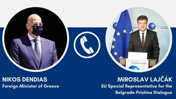 Τηλεφωνική επικοινωνία με τον ειδικό εκπρόσωπο της ΕΕ για τον Διάλογο Βελιγραδίου με την Πρίστινα, Μίροσλαβ Λάιτσακ (Miroslav Lajčák), είχε ο υπουργός Εξωτερικών Νίκος Δένδιας.