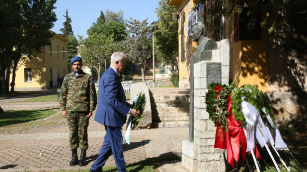 Ο ΠτΔ Κωνσταντίνος Τασούλας κατέθεσε στεφάνι στην προτομή του Σπύρου Μουστακλή στο ΕΑΤ-ΕΣΑ