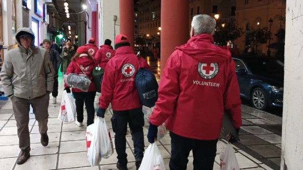 Περιπολίες του Ερυθρού Σταυρού στην πόλη της Θεσσαλονίκης για την υποστήριξη των αστέγων