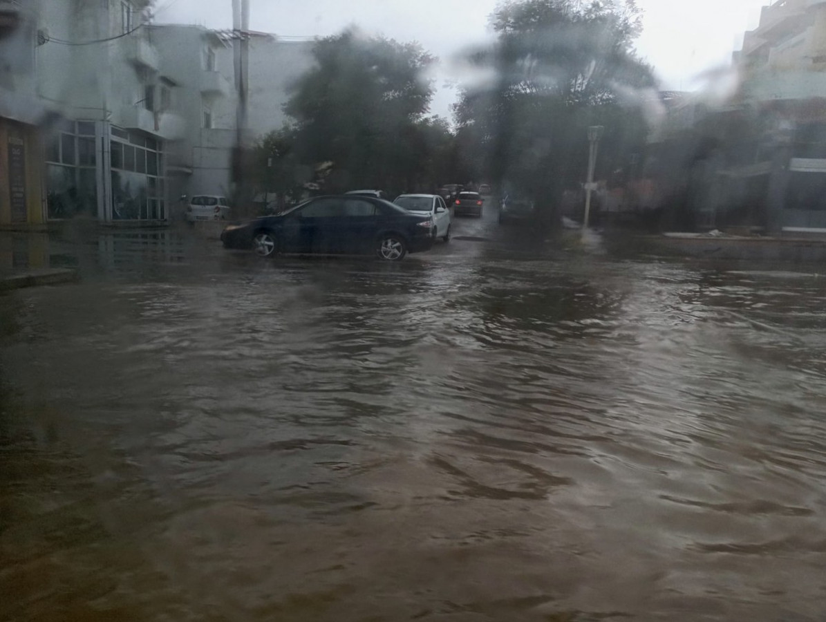 Αυτή την ώρα η βροχή έχει σταματήσει και τα προβλήματα έχουν αντιμετωπιστεί.