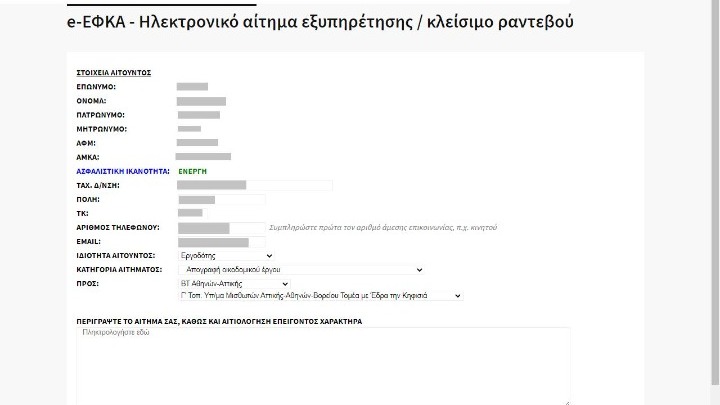 Υπηρεσιακή μονάδα ΕΦΚΑ: επιλέγετε από μενού τη μονάδα του ΕΦΚΑ που επιθυμείτε.