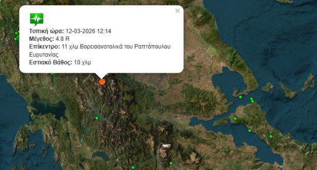 Σεισμική δόνηση, μεγέθους 4,8 Ρίχτερ σύμφωνα με το Γεωδυναμικό Ινστιτούτου του Αστεροσκοπείου Αθηνών, σημειώθηκε στις 12:14 το μεσημέρι της Πέμπτης, με επίκεντρο ορεινή περιοχή μεταξύ Καρδίτσας, Αρτας και Ευρυτανίας. Ειδικότερα, το επίκεντρο εντοπίζεται 11 Χλμ. ΒΑ του Ραπτόπουλου Ευρυτανίας. Ο σεισμός έγινε αισθητός στην ευρύτερη περιοχή της Θεσσαλίας, την Ευρυτανία και την Άρτα.