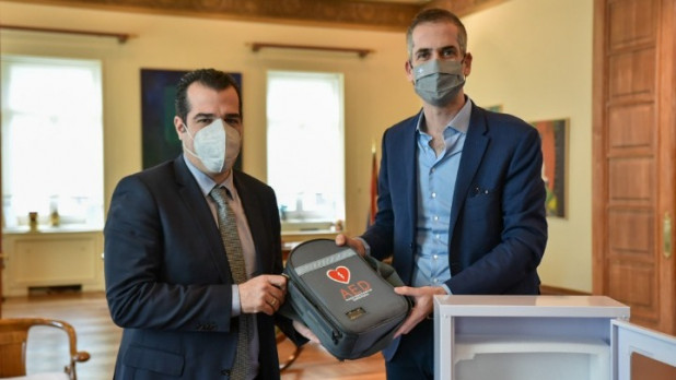 Τους απινιδωτές παρέδωσε σήμερα στον δήμαρχο Αθηναίων Κώστα Μπακογιάννη, ο υπουργός Υγείας Θάνος Πλεύρης.