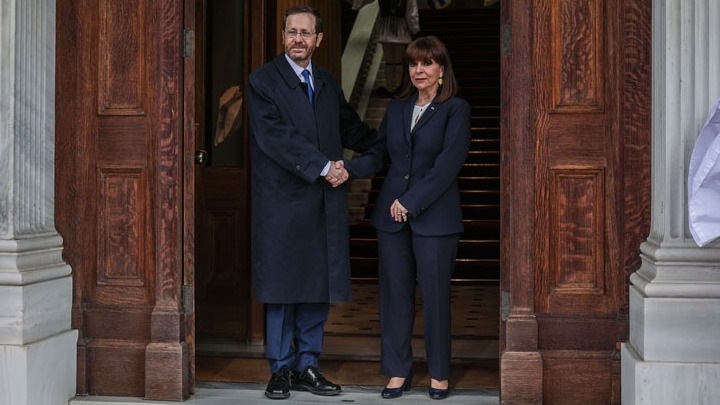 Με φόντο την εισβολή της Ρωσίας στην Ουκρανία, η Πρόεδρος της Δημοκρατίας Κατερίνα Σακελλαροπούλου υποδέχθηκε σήμερα στην Ηρώδου Αττικού τον Πρόεδρο του Ισραήλ Ιτσχάκ Χέρτζογκ, ο οποίος πραγματοποιεί επίσημη επίσκεψη στη χώρα μας, έπειτα από πρόσκληση της Ελληνίδας ομολόγου του.