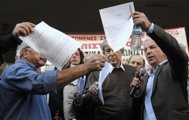 Συνταξιούχοι έκαψαν τις επιστολές Κατρούγκαλου έξω από το υπουργείο
