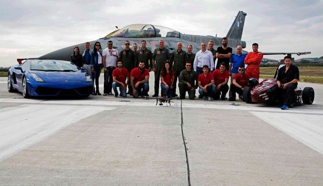 Ο "Θηρεύς" το καμάρι του Πανεπιστημίου Θεσσαλίας πιάνει τα 0-100 σε λιγότερο από 4', η Lamborghini έχει τελική ταχύτητα τα 280 χιλιόμετρα την ώρα, ενώ το μαχητικό αεροσκάφος απογειώνεται από το έδαφος με ταχύτητα 350 χιλιομέτρων! Τα παραπάνω νούμερα μας κάνουν να καταλάβουμε πως εντός του αεροδιαδρόμου εκτυλίχθηκε μια σκληρή κόντρα!