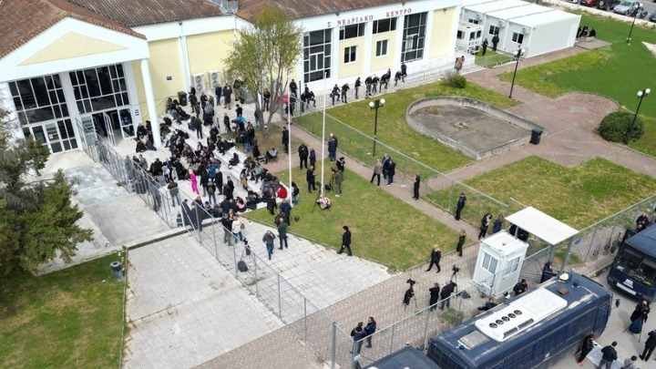 Πριν από τη διακοπή η πρόεδρος του Τριμελούς Εφετείου Κακουργημάτων Λάρισας ξεκίνησε με την εκφώνηση των ονομάτων των κατηγορουμένων ωστόσο διέκοψε λόγω αντιδράσεων από τους παρευρισκόμενους στο ακροατήριο που διαμαρτύρονται για την αιθουσα όπου διεξάγεται η δίκη.