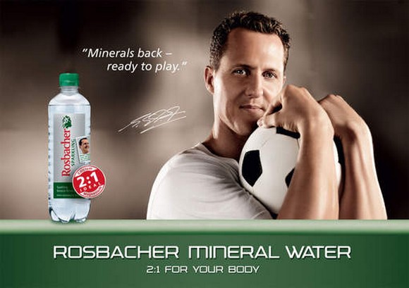 Πριν από το σοβαρό ατύχημα στις γαλλικές Άλπεις, ο Μίκαελ Σουμάχερ είχε υπογράψει συμβόλαιο με την γερμανική εταιρεία "Hassia" προκειμένου να διαφημίσει το νέο προϊόν με ονομασία "Rosbacher". Η διαφημιστική καταχώρηση για το μεταλλικό νερό εμφανίστηκε στις εφημερίδες προκαλώντας σάλο και πλέον οι φαν του Σουμάχερ έχουν κηρύξει εμπάργκο στην εταιρεία ενώ πολύ επιθετικά είναι και τα σχόλια στα social media. Από την πλευρά της, η εταιρεία υποστηρίζει το εξής: "Αντιδράσαμε αμέσως μετά το ατύχημα του Μίκαελ και αποκλείσαμε το σποτ από ραδιόφωνα και τηλεοράσεις, δεν προλάβαμε όμως να το κάνουμε εγκαίρως και για τις εφημερίδες".