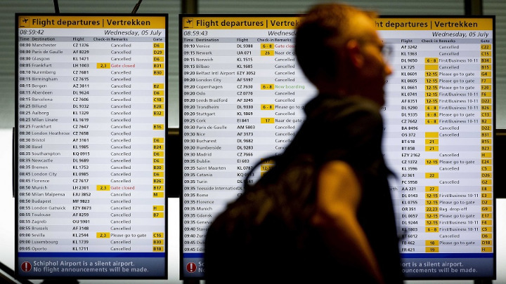 Σύμφωνα με τον ιστότοπο του Σίπχολ γύρω στις 11.00 π.μ. (12:00 ώρα Ελλάδας), περίπου 75 πτήσεις που επρόκειτο να αναχωρήσουν από το αεροδρόμιο ακυρώθηκαν, οι περισσότερες από τις οποίες είχαν προγραμματιστεί για το βράδυ.