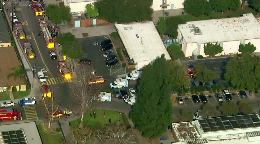 Προσωπικό των υπηρεσιών έκτακτης ανάγκης έσπευσε σε δύο δημοτικά σχολεία του Λος Άντζελες, στην Καλιφόρνια, όταν αεροσκάφος που κατευθυνόταν προς το Διεθνές Αεροδρόμιο της πόλης άδειασε τα καύσιμά του πάνω από αυτά.