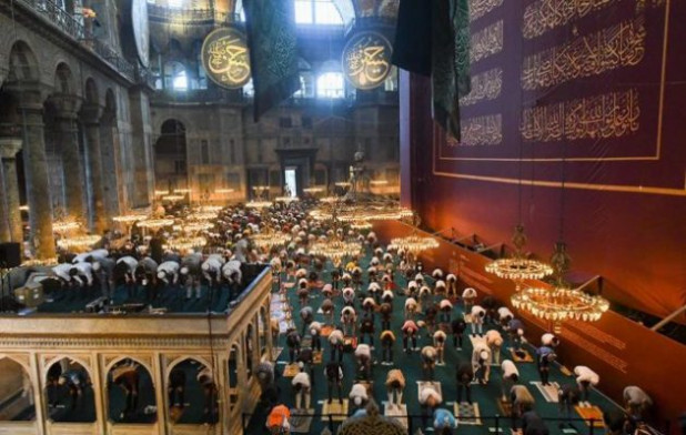 Προσευχή στην Αγία Σοφία πραγματοποιήθηκε για πρώτη φορά σήμερα τα ξημερώματα για το μουσουλμανικό Μπαϊράμι των Θυσιών έπειτα από 86 χρόνια όπως μεταδίδουν τα τουρκικά μέσα ενημέρωσης.