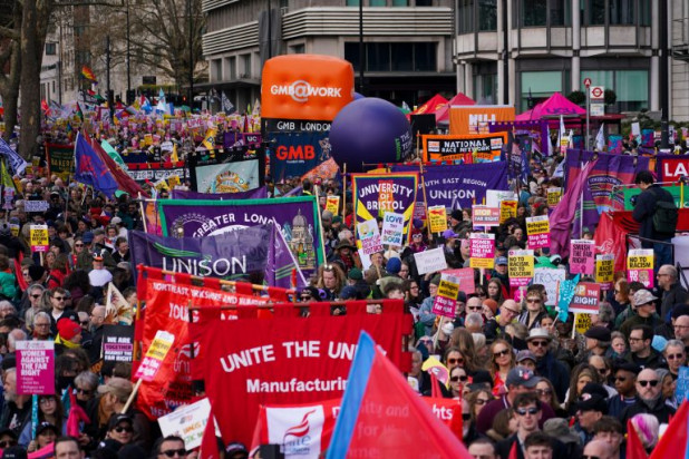 Η κύρια πορεία της Together Alliance, συμμαχίας οργανώσεων με συμμετοχή συνδικάτων, περιβαλλοντικών ομάδων και κοινωνικών κινημάτων, συγκεντρώθηκε από τις 12:00 του Σαββάτου (28/3) στο Park Lane, δίπλα στο Hyde Park.