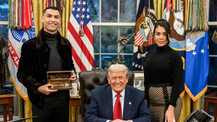 Μάλιστα, ο 40χρονος CR7, ο οποίος καθόταν σ' ένα από τα τραπέζια του δείπνου σε περίοπτη θέση, όχι μακριά από τον Ντόναλντ Τραμπ, την επόμενη ημέρα συναντήθηκε ξανά με τον πρόεδρο των Ηνωμένων Πολιτειών, ο οποίος τον δέχτηκε στο οβάλ γραφείο.