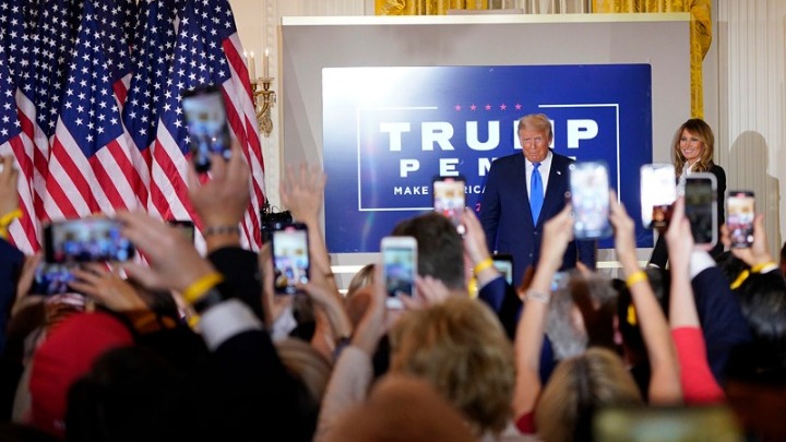 «Ειλικρινά, πράγματι νικήσαμε», δήλωσε ο Τραμπ ενώπιον υποστηρικτών του στον Λευκό Οίκο.