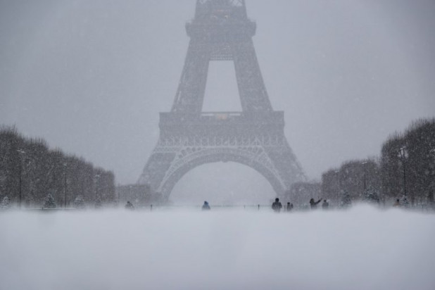 Το Παρίσι ξύπνησε την Τρίτη καλυμμένο από ένα λευκό πέπλο χιονιού, με στέγες και μνημεία να έχουν ντυθεί στα λευκά.