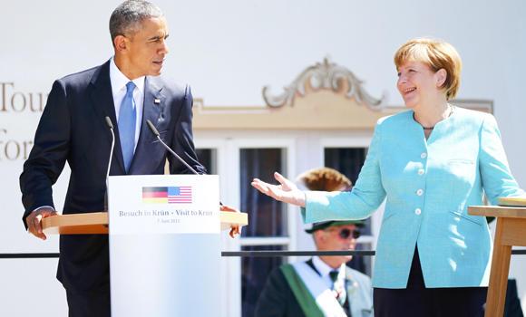 Την ευγνωμοσύνη της Γερμανίας προς τις ΗΠΑ για την συμβολή τους στην επανένωση της Γερμανίας, εξέφρασε η καγκελάριος 'Αγγελα Μέρκελ μετά την συνάντηση που είχε νωρίτερα σήμερα με τον Αμερικανό πρόεδρο Μπαράκ Ομπάμα στο περιθώριο της Συνόδου Κορυφής της G-7 στο Σλος Ελμάου της Βαυαρίας. Η κ. Μέρκελ τόνισε ότι παρά τις διαφορετικές απόψεις «η Αμερική, οι ΗΠΑ, είναι φίλη μας, εταίρος μας και τόσο σημαντικός εταίρος, ώστε συνεργαζόμαστε στενά. Διότι το χρειαζόμαστε για πολλά κοινά συμφέροντα. Διότι το θέλουμε και διότι μοιραζόμαστε κοινές αξίες» και ανέφερε ότι οι δυο ηγέτες μιλούν πολύ συχνά.