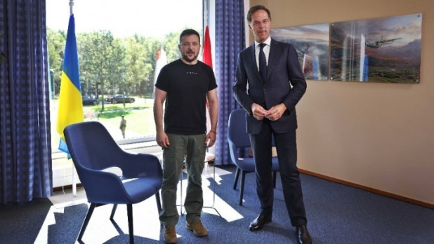 Μερικές ώρες νωρίτερα, ο ουκρανός πρόεδρος βρισκόταν σε βάση της Πολεμικής Αεροπορίας στο Αϊντχόφεν κατά τη διάρκεια της οποίας ο Μαρκ Ρούτε επισημοποίησε την παράδοση των F-16 στην Ουκρανία.