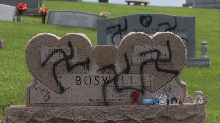 Στις επιτύμβιες πλάκες ζωγραφίστηκαν σβάστικες με μαύρο σπρέι τη νύχτα της Παρασκευής προς Σάββατο, στο νεκροταφείο της μικρής πόλης Γκλεν Κάρμπον.