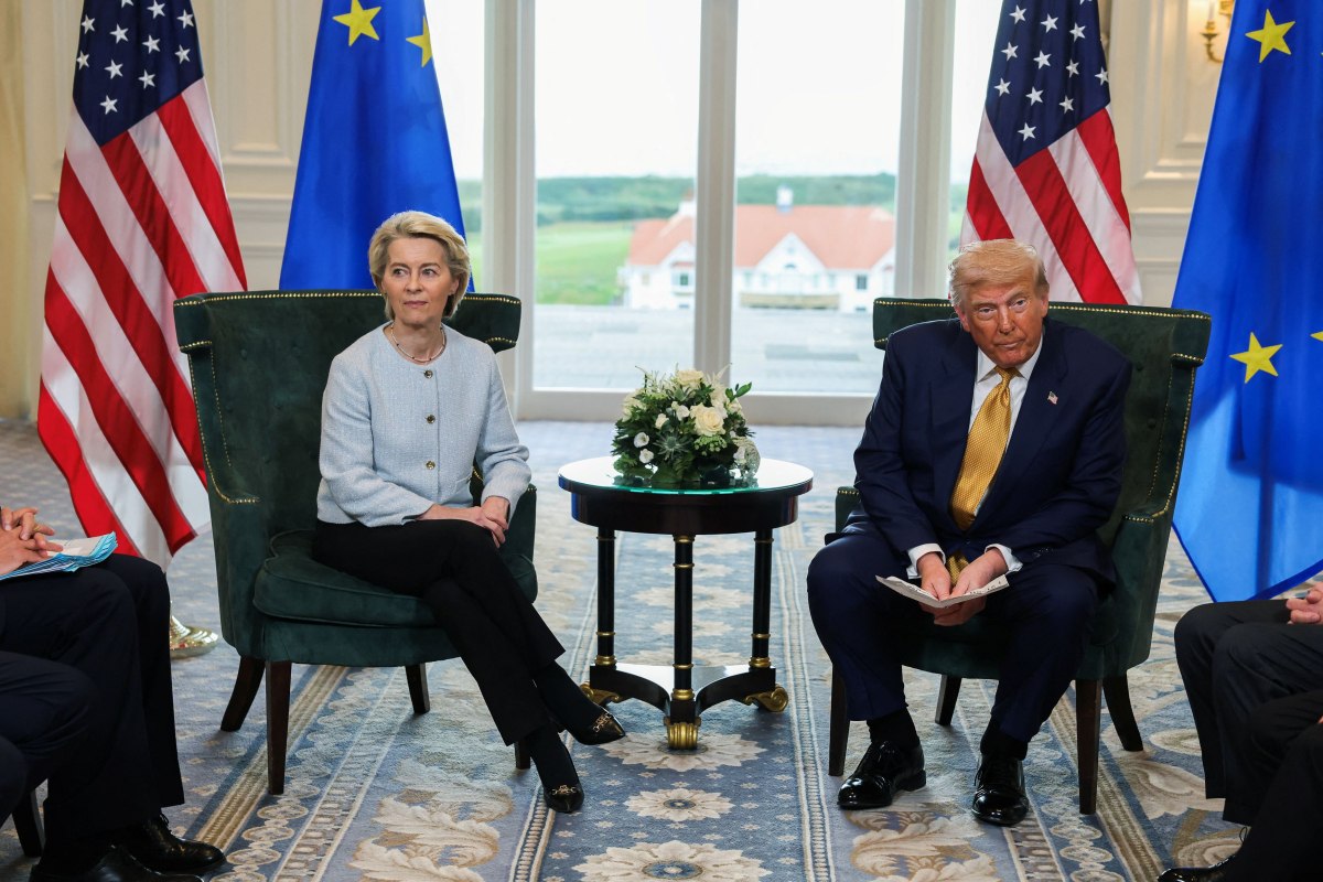 Η πρόεδρος της Κομισιόν και ο πρόεδρος των ΗΠΑ συναντήθηκαν στη Σκωτία, στο θέρετρο γκολφ που διαθέτει ο Ντόναλντ Τραμπ. «Τα καταφέραμε», είπε ο Ντόναλντ Τραμπ, που είχε απειλήσει με δασμό 30%, αν ΗΠΑ και ΕΕ δεν είχαν φτάσει σε συμφωνία.