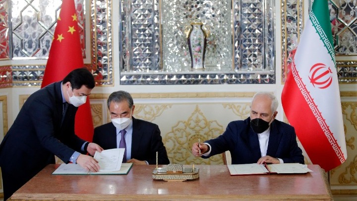 Οι υπουργοί Εξωτερικών της Κίνας και του Ιράν υπέγραψαν σήμερα μια 25ετή συμφωνία συνεργασίας στη διάρκεια τελετής που μεταδόθηκε ζωντανά από την ιρανική κρατική τηλεόραση.